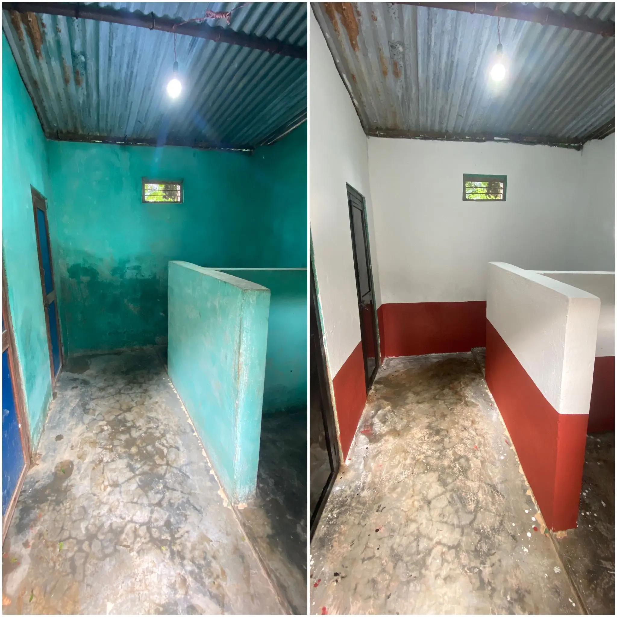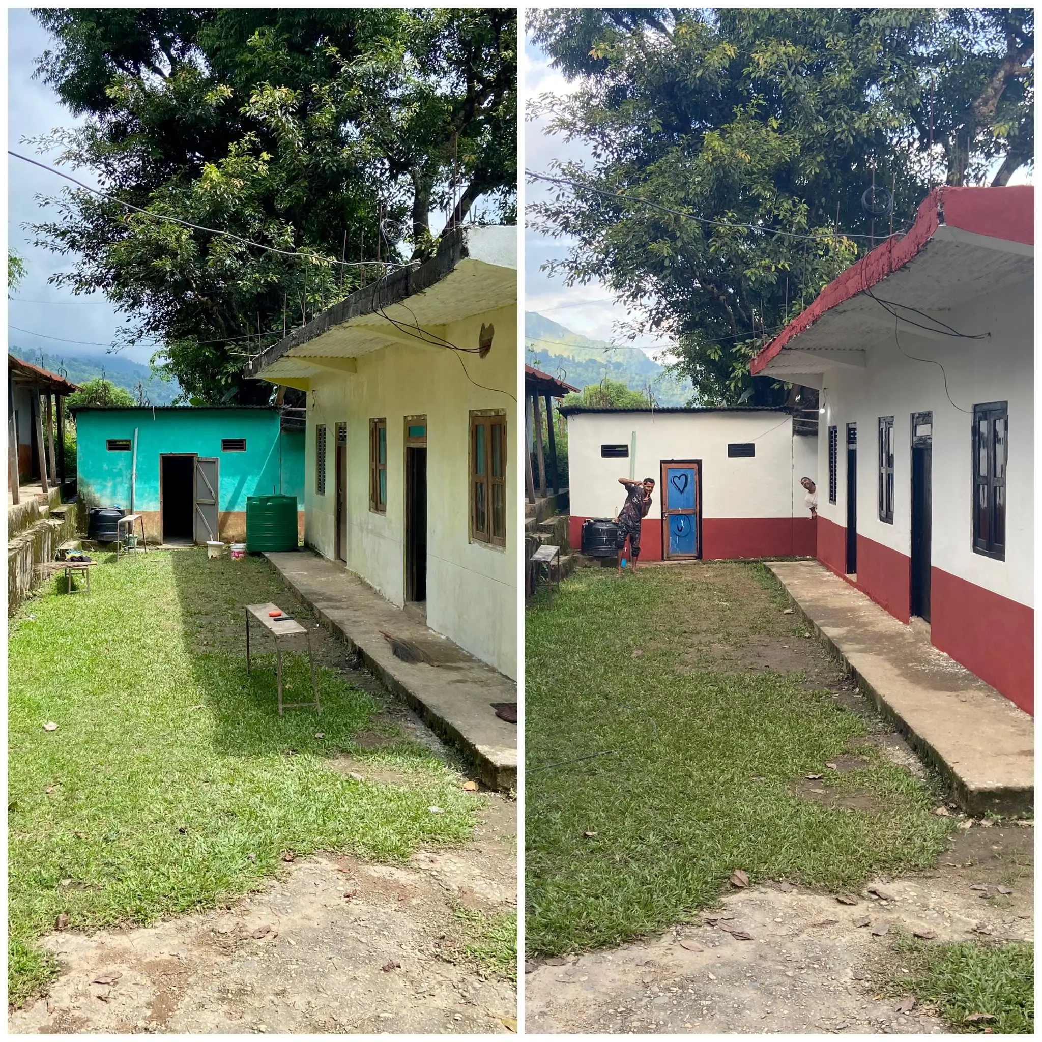 Un autre bâtiment de l’école présentait un état critique : toiture très dégradée, infiltration sévère, murs fragilisés. Impossible de peindre ou d’aménager tant que l’eau continuait d’entrer par le toit. Les priorités ont donc été revues : la réfection du toit a été lancée durant la mission et finalisée après le retour de Justine, pour permettre une rénovation complète en 2026.
